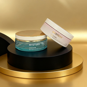 Frasco de Vidrio Plano y Redondo de 100g con Cuello Ultra Ancho para un Uso Conveniente, Equipado con Tapa Lujosa o Sencilla